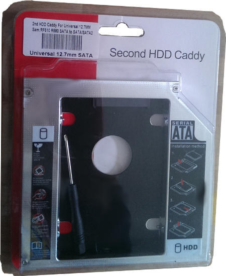 Supporto per secondo HD da inserire al posto dell'unita' ottica. Compatibile con tutti i tipi di notebook con connettore SATA. Altezza del supporto 12.7mm, solitamente per notebook 15 e 17 pollici.